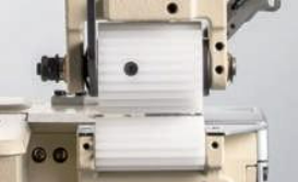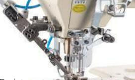Galoneira cilíndrica eletrônica, motor direct drive, 3 agulhas, trançador superior, catraca posterior para rebatimento de elásticos agulhas, lubrificação automática, corte de fios, posicionamento de agulha, calcador e catraca.
