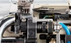 Galoneira cilíndrica com refilador esquerdo para cortar a borda do tecido, motor direct drive, 3 agulhas, trançador superior, lubrificação automática, fácil operação e desempenho mais estável. É adequado para todos os tipos de malhas, bainha inferior de camisetas (o cortador do lado esquerdo corta primeiro a borda extra do tecido e depois costura a barra). Corte de fios automático, posicionamento de agulha e calcador.